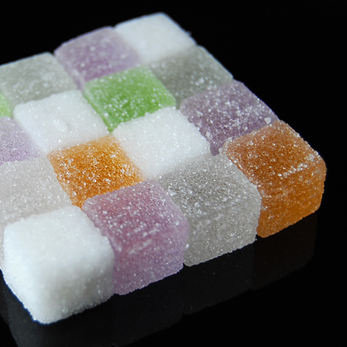色とりどりのゼリーです。 うれしい色、ごきげんな色、やさしい色 ・・・すこしさびしげな色も交じっていますが、 どれもこれもフルーティな味と香りにくるまれた、 小さいながらも美しく愛らしい彩りです。 ひとつひとつお口にふくんで、 そう、クロスワード・パズルを解くように 「彩」 の気分をお楽しみ下さい。